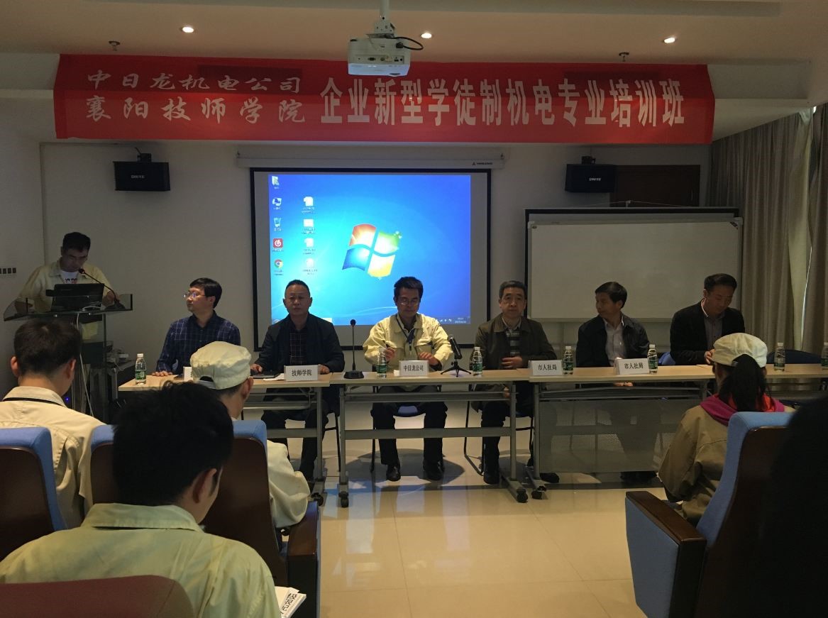 4月26日,由我司和襄陽技師學(xué)院聯(lián)合組織的機(jī)電一體化專業(yè)企業(yè)新型學(xué)徒制試點(diǎn)培訓(xùn)班正式開班。這標(biāo)志著襄陽市2017年企業(yè)新型學(xué)徒制試點(diǎn)工作正式啟動(dòng)。市人社局副局長(zhǎng)宋明志、職業(yè)能力建設(shè)科科長(zhǎng)耿元斌、市職業(yè)