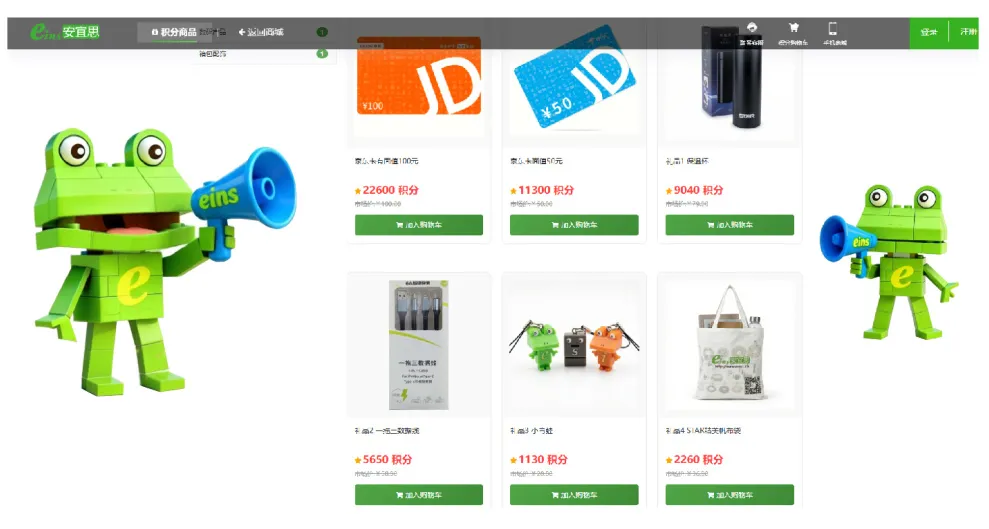 點(diǎn)擊eins商城網(wǎng)站上方導(dǎo)航欄“積分商城”